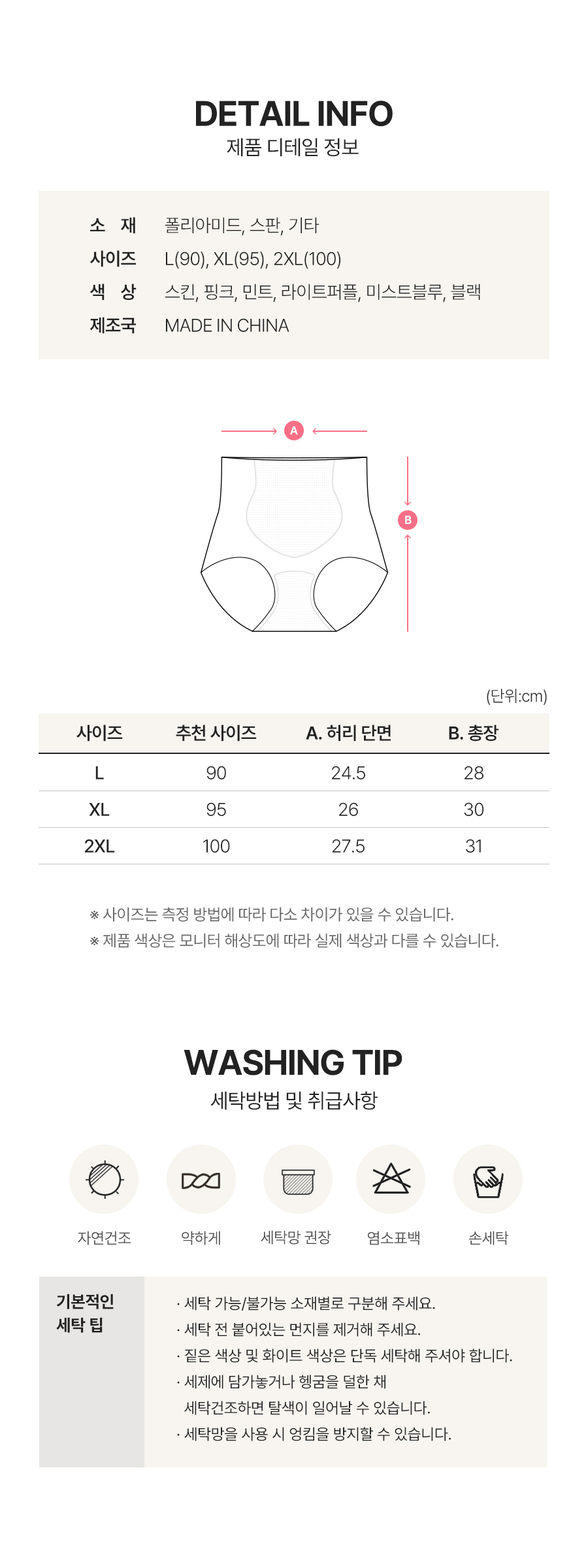 세탁방법 및 취급시 주의사항 상세페이지 참고
