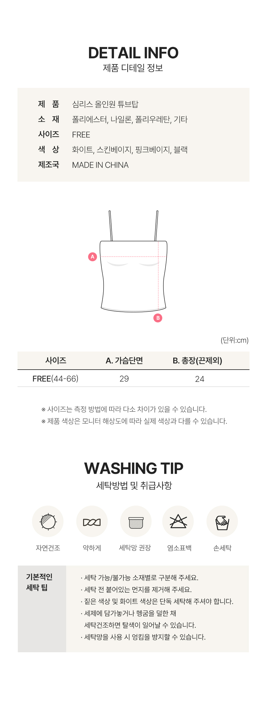 세탁방법 및 취급시 주의사항 상세페이지 참고
